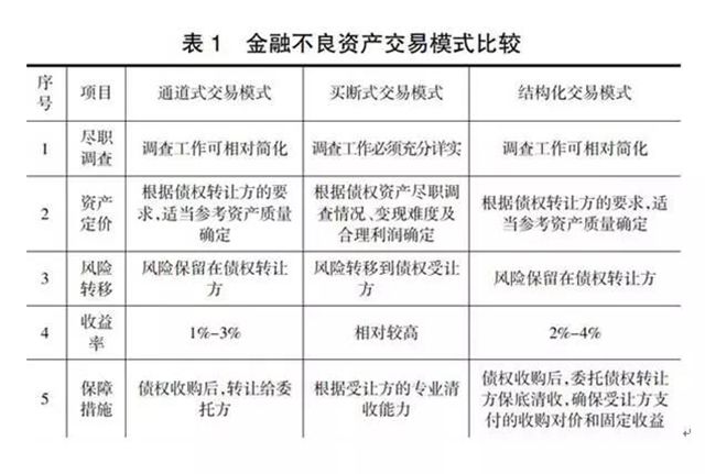 金融不良資產(chǎn)交易模式主要包括通道式、買斷式和結(jié)構(gòu)化三種。